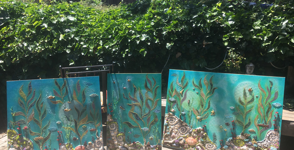 One and half years ago - one of my collectors - inspired me to explore new territory by commissioning a mixed media Kelp Forest.